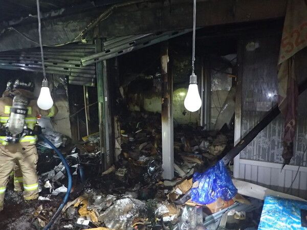 이 불로 인명피해는 없었으나 해당 점포가 불에 탄 것으로 전해졌다.