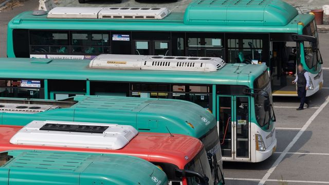 2023년 10월 25일, 경기도 수원시의 한 시내버스 차고지에 버스가 주차돼 있는 모습. / 뉴스1