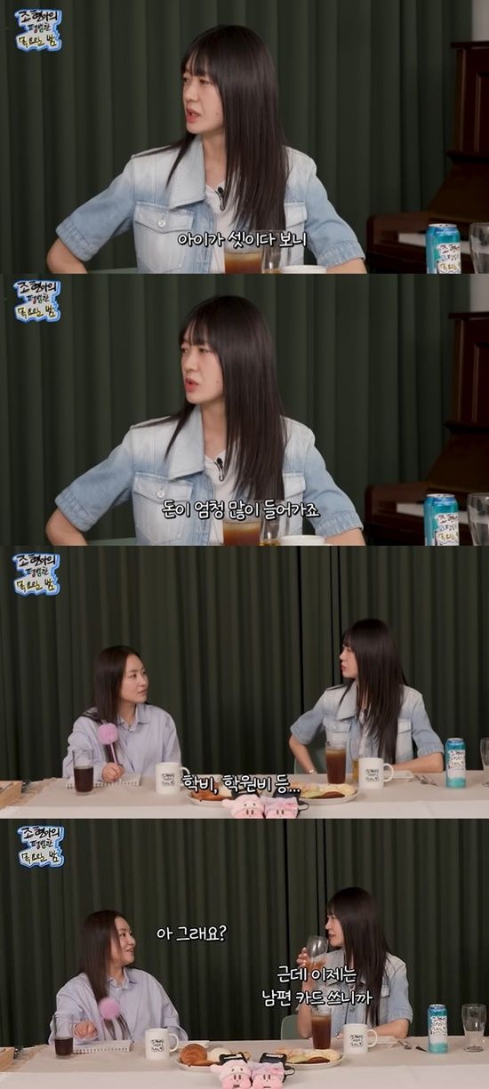 "본인은 돈을 많이 안쓰지 않나"라는 말에는 "그렇긴 한데, 아이가 셋이다 보니 학비와 학원비가 엄청 많이 들어간다. 학원을 많이 안 보내는 편인데도 그렇더라. 지금은 남편 카드를 쓰는데, 결제 내역이 남편한테 가니까 안 좋은 것 같다"고 솔직히 전했다.