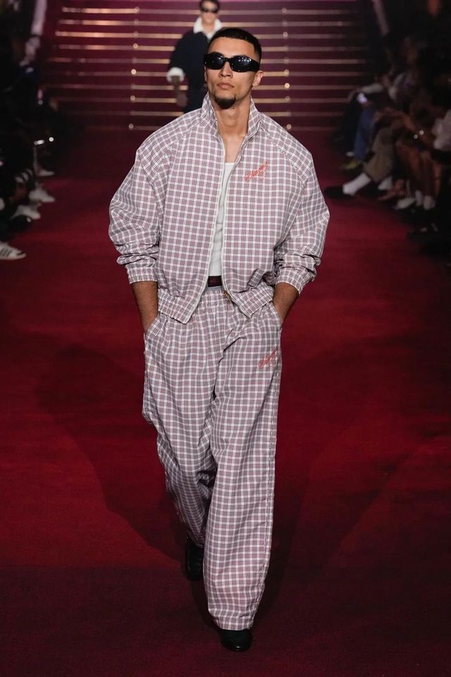 새깅을 시도해보고 싶다면 피디에프(PDF)의 2026 S/S 컬렉션이 좋은 참고가 된다. 허리 위로 드러나는 복서에는 컬러풀한 패턴부터 레오퍼드, 체크까지 다양한 디자인이 눈에 띈다. 새깅을 더욱 특별하게 즐기고 싶다면 존재감 있는 벨트로 레이어를 더해주는 것도 방법이다. 볼드한 장식이 더해진 벨트라면 자연스레 허리에 시선을 집중시킬 수 있다. 또한 복서와 팬츠가 한 벌처럼 디자인된 하이브리드 팬츠는 간편하게 새깅 무드를 완성해준다. 런웨이 위 모델들처럼 한 손으로 팬츠를 살짝 잡고 여유 있게 걷는 제스처 또한 잊지 말 것.