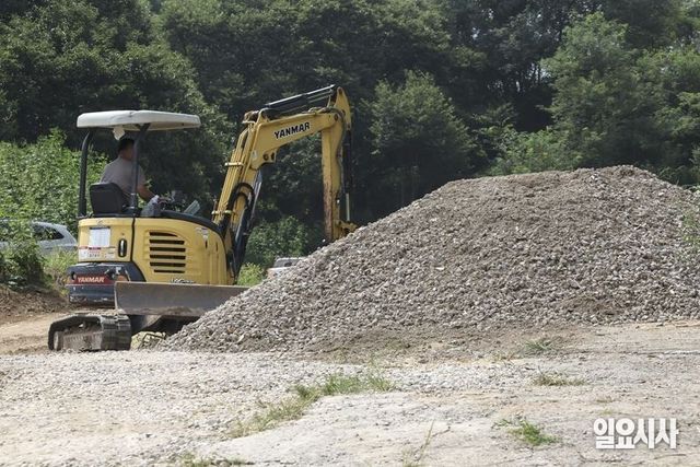 양식장 진입로는 두 개였다. 양식장에 인접한 도로를 사이에 둔 양쪽 토지는 모두 갈릴리 농원의 소유다. 자유로 방향으로 서서 오른쪽은 양식장, 왼쪽은 추가 양식장을 만들기 위해 갈릴리 농원이 매입한 땅이다. 양식장에서 약 20m 떨어진 곳에 소형 굴착기 한 대를 조작하는 기사가 보였다.
