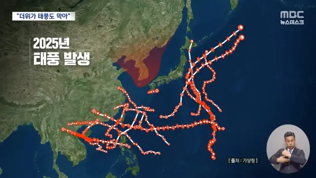 이중 고기압에 막혀서 한반도만 피해서 지나가는 중임.