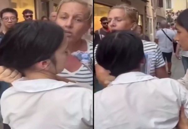 해당 영상에서 한 50세 미국인 여성 관광객은 자기 배낭에서 지갑, 에어팟 등 소지품을 훔친 10대 소매치기범 3명을 추적해 붙잡았다.