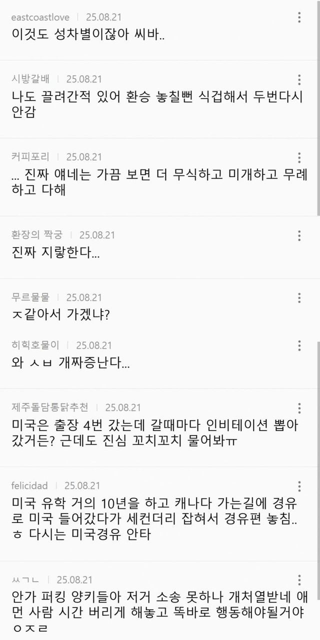 며칠전 국내 커뮤를 휩쓴 미국 입국심사 세컨더리룸 끌려가서 탈탈 털린 썰