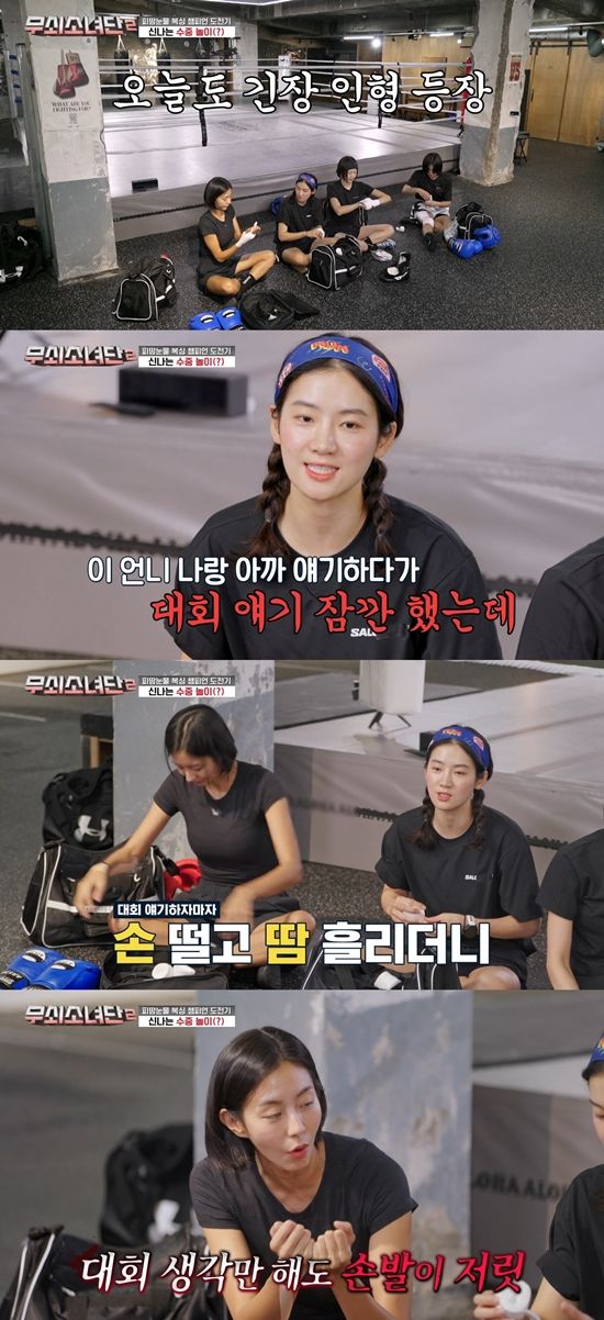 이어 멤버들은 첫 대회를 30일 앞두고 복싱장을 찾았다. 유이가 긴장 가득한 숨을 내뱉자, 박주현은 "이 언니 나랑 아까 얘기하다가 대회 얘기 잠깐 했는데 그때부터 손 떨고 땀 흘리더니 청심환 먹었다"라고 밝혔다.