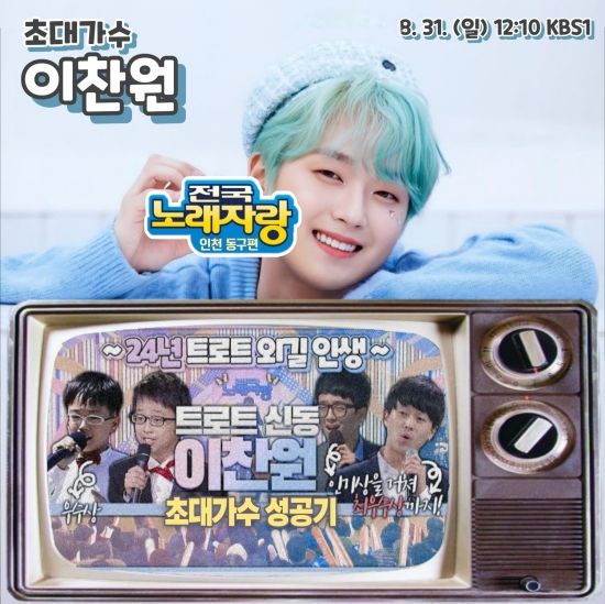 최근 KBS 1TV '전국노래자랑' 측에 따르면, 이찬원은 8월 31일 일요일 방송되는 '전국노래자랑' 인천광역시 동구 편에 초대 가수로 출연한다.