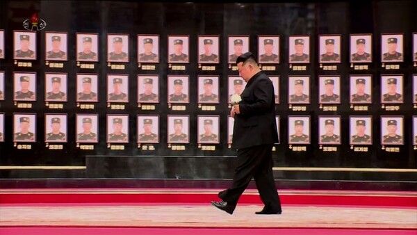 김 위원장은 "이역의 전장에서 싸우다 쓰러진 우리 군관, 병사들을 다시 일으켜 세워서 데려오지 못한 안타까움, 귀중한 그들의 생을 지켜주지 못한 미안한 마음을 안고 유가족들 모두에게 다시 한번 속죄한다"고 말했다.