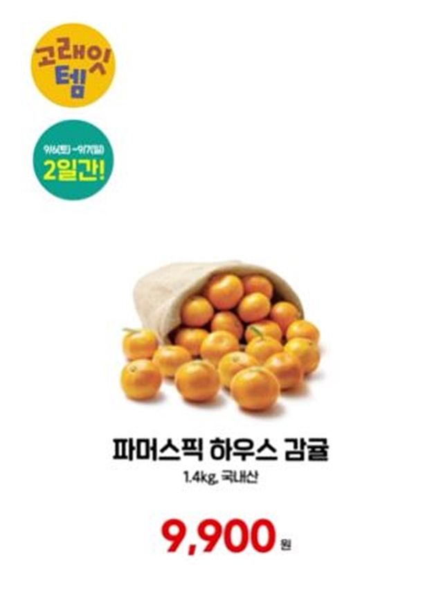 이마트는 이번 행사 기간 국민 과일인 '하우스 감귤'을 특가에 판매할 예정이어서 관심을 끌고 있다. 이마트는 '파머스픽 하우스 감귤' 1팩(1.4kg, 국내산)을 9900원 특가에 판매한다. 행사 기간은 토요일인 9월 6일부터 일요일인 9월 7일까지다. 매장 재고 수량에 따라 조기 품절될 수 있다고 이마트는 설명했다.