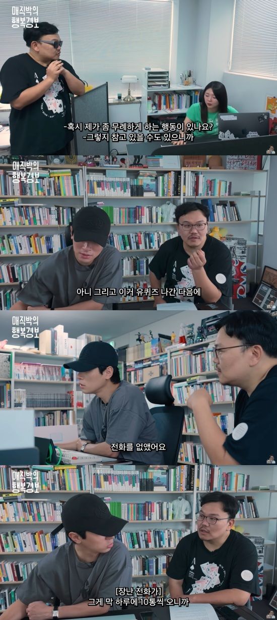 공개된 영상에서 매직박은 '유 퀴즈 온 더 블럭'(유퀴즈)에도 출연했던 박정민의 출판사 직원에게 "책 많이 팔리냐"고 물었고, 직원은 "판매량은 많이 떨어졌다"고 털어놨다.