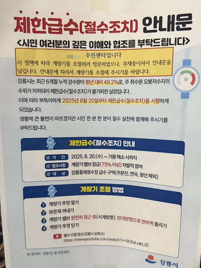 강릉 전 가구 제한급수 시행