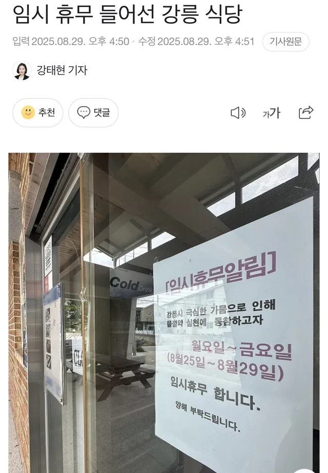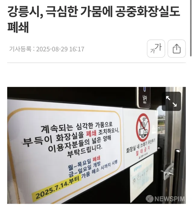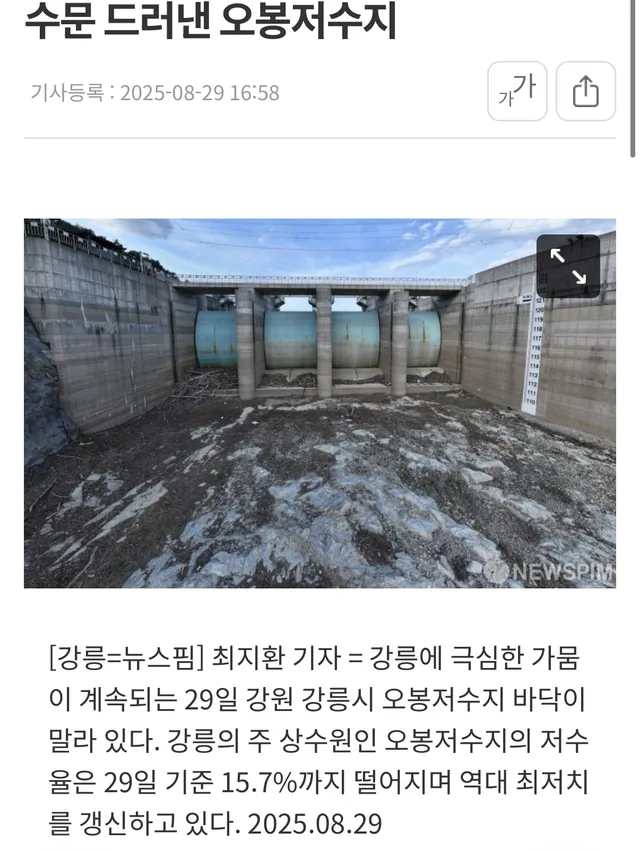 한편 강릉시는 오는 9월 1일 가뭄 대응 비상대책 2차 기자회견을 열고 재난안전