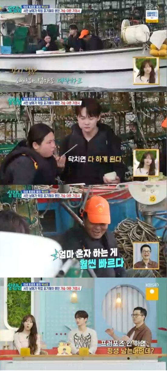 이날 박서진은 여동생 박효정과 함께 아버지 뱃일을 위해 나섰다. 뱃일이 처음인 박효정은 멀미 때문에 힘들어 했다.