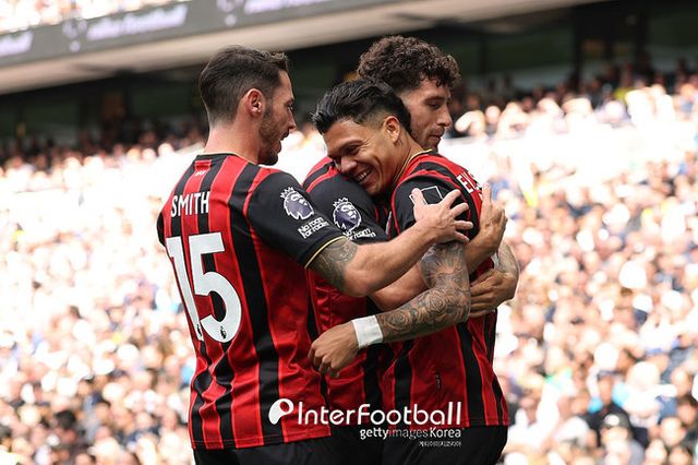 본머스 소나기 슈팅이 이어졌다. 전반 11분 세메뇨 헤더는 골문을 외면했다. 전반 17분 에바니우손 슈팅은 빗나갔다. 전반 21분 브룩스 슈팅은 비카리오가 막아냈다. 코너킥 상황에서 브룩스 헤더는 빗나갔다. 전반 26분 아담 스미스 부상으로 제임스 힐이 투입됐다.
