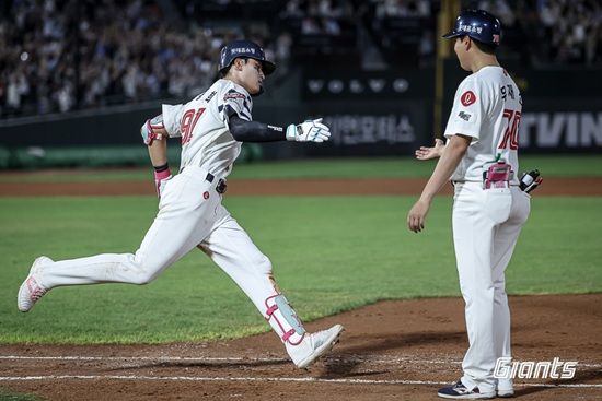 김 감독의 바람대로 윤동희가 30일 경기에서 맹타를 휘둘렀다. 윤동희는 1-2로 뒤진 1회말 2사 1, 2루 기회에서 상대 선발 투수 어빈의 2구째 136km/h 체인지업을 공략해 좌중간을 가르는 2타점 역전 적시 2루타를 때렸다.