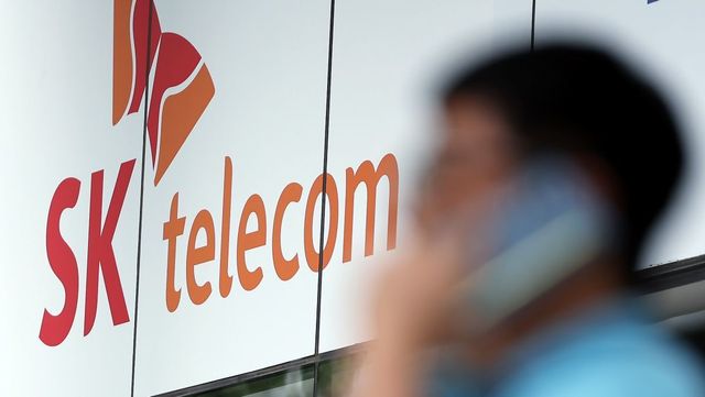 서울 도심의 SK텔레콤 대리점 앞에서 한 시민이 전화 통화를 하고 있다. / 뉴스1