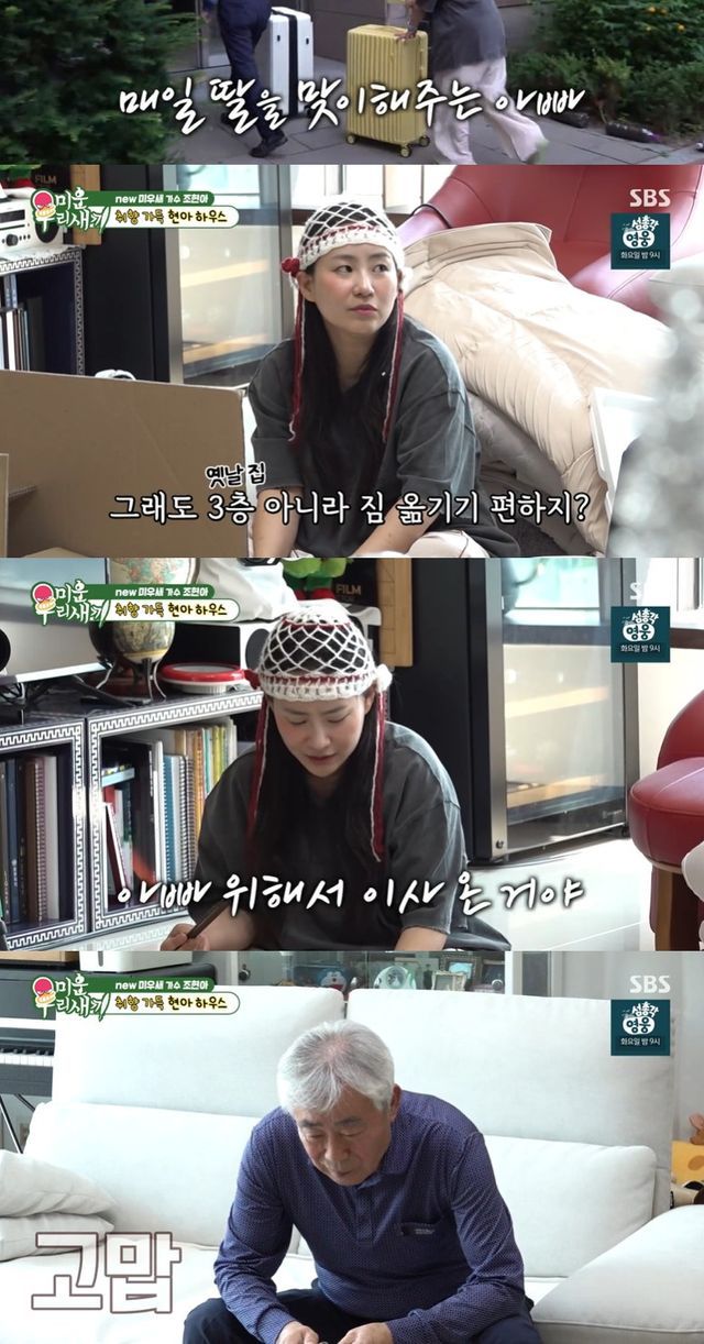 조현아가 "그래도 옛날처럼 3층이 아니어서 짐 옮기기 편하지 않냐. 계단 안 올라가고"라고 하자 아버지는 "그럼"이라고 말했고, 이에 조현아는 "아빠 위해서 (이사) 온 거야"라며 애정을 드러내 훈훈함을 더했다.