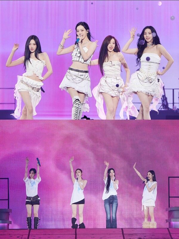 오후 5시 05분, 에스파 멤버들이 리프트 위에서 모습을 드러내자 공연장이 떠나갈듯한 함성이 터졌다. 카리나, 윈터, 지젤, 닝닝은 정규 1집 더블 타이틀곡 '아마겟돈'(Armageddon)으로 강렬한 오프닝을 열었다.