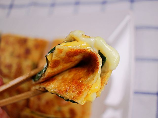 안쪽에서 녹아내린 치즈가 고소하게 퍼져요.