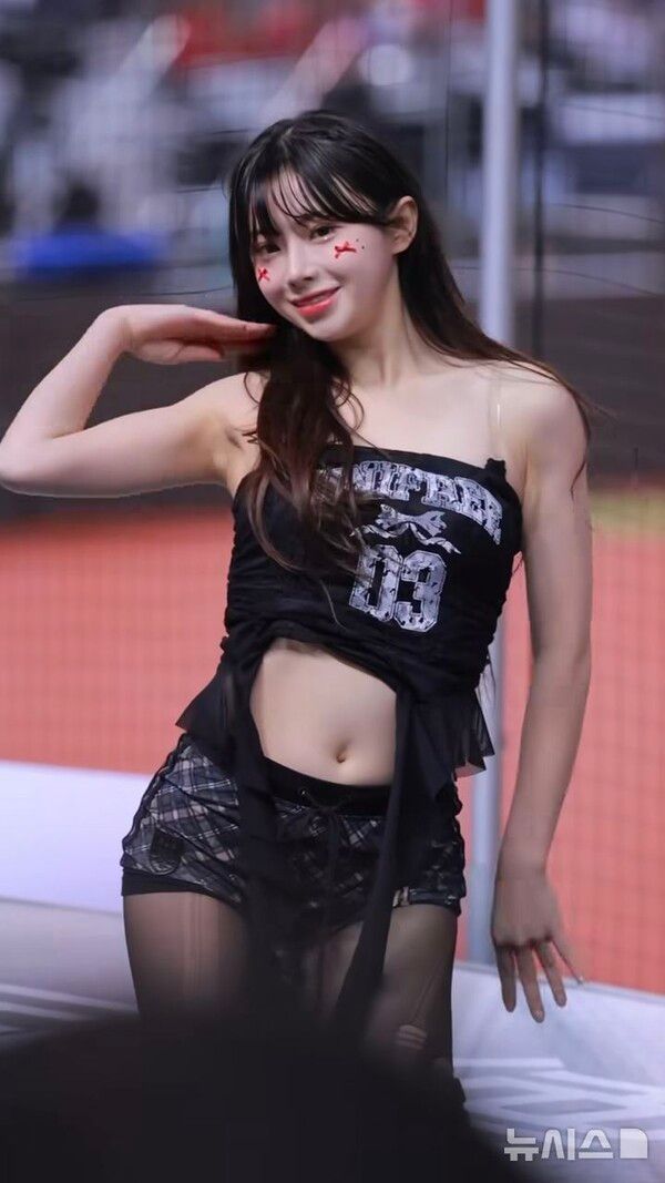 공개된 영상 속 김나연은 검은색 민소매 튜브톱 스타일의 유니폼 상의를 입고 열정적으로 치어리딩했다.
