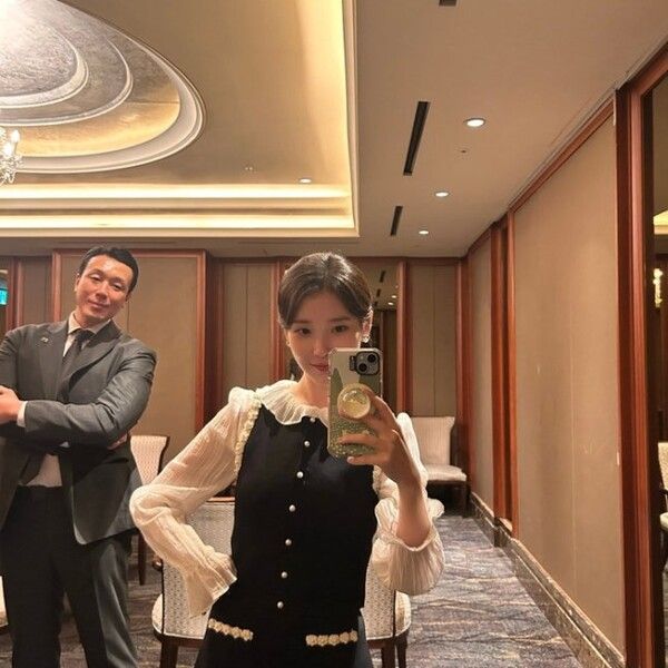 박근우 경호원은 최근 자신의 SNS에 "우리~지은대장 문화체육관광부장관상 수상 축하해"라는 글과 함께 사진을 올렸다. 사진은 지난 8월 28일 서울에서 열린 '2025 뉴시스 한류엑스포' 시상식 대기실에서 찍은 것으로, 블랙과 화이트 원피스로 세련된 분위기를 낸 아이유 옆에 박 경호원이 듬직하게 서 있다.