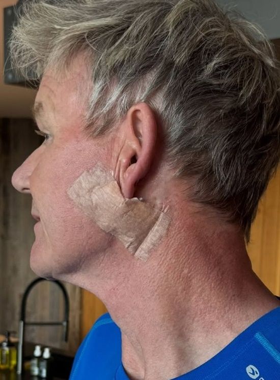 또 고든 램지는 귀 아래 부위에 붕대를 감은 사진에 이어 귀 밑에 선명하게 남은 수술 자국이 담긴 사진도 함께 공개했다.