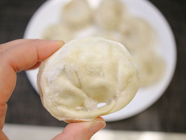 냉동실에서 꺼내 꽁꽁 얼어 있는 만두도