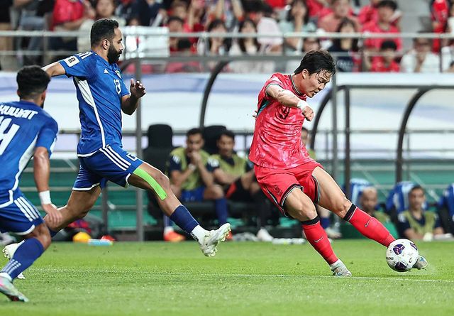 지난 6월 10일 오후 서울 마포구 상암동 서울월드컵경기장에서 열린 2026 국제축구연맹(FIFA) 북중미 월드컵 아시아 3차 예선 B조 10차전 대한민국과 쿠웨이트의 경기, 대한민국 오현규가 슛을 시도하고 있다 / 뉴스1