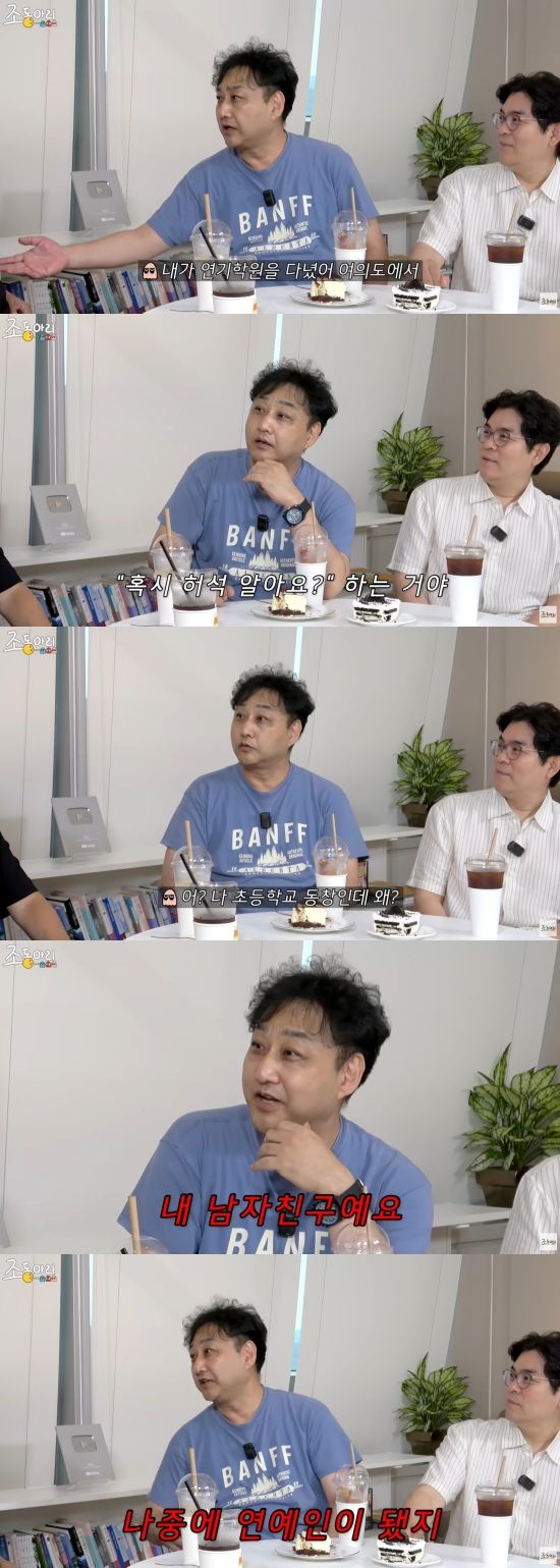 졸업 후 연락이 끊어졌던 두 사람은 동국대 연극영화과 시험을 보면서 다시 만나게 됐다고. 당시 여의도에서 연기학원을 다녔다는 김수용은 "(한 여자가) 이렇게 오더니 '혹시 허석 알아요?' 하더라. 초등학교 동창이라고 하니까 '내 남자친구에요' 하더라"고 당시 자신에게 사실을 알린 여성의 실명을 거론했다.