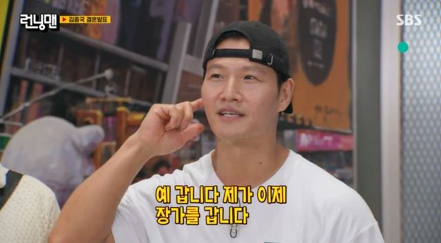 김종국은 “사실 그동안 티를 냈다. 다른 날 기사 나면 ‘런닝맨’에서 플랜카드 달까 봐 지금 말한다”고 전했고 하하는 “채연과 결혼하는 거 아니었냐”며 놀려 웃음을 자아냈다. 김종국은 예비신부에 대해 “여러분은 모르는 분이다. 연예계 쪽 사람이 아니다”라고 선을 그었다.