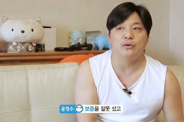 하지만 영광의 정점에서 인생의 시련이 찾아왔다. 윤정수는 지인의 사업에 연대보증을 섰다가, 믿었던 이의 배신으로 30억 원이 넘는 막대한 채무를 홀로 짊어지게 됐다. 20억 원대 청담동 아파트는 경매로 넘어갔고, 관리비와 공과금조차 내지 못해 집에 전기와 수도가 끊기는 극심한 생활고를 겪기도 했다. "빨래조차 음용수관에 호스를 연결해서 했었다"라고 밝힌 그는 급기야 현관문을 쇠사슬로 잠그고 나가지 못할 만큼 힘겨운 시기를 보냈었다고.