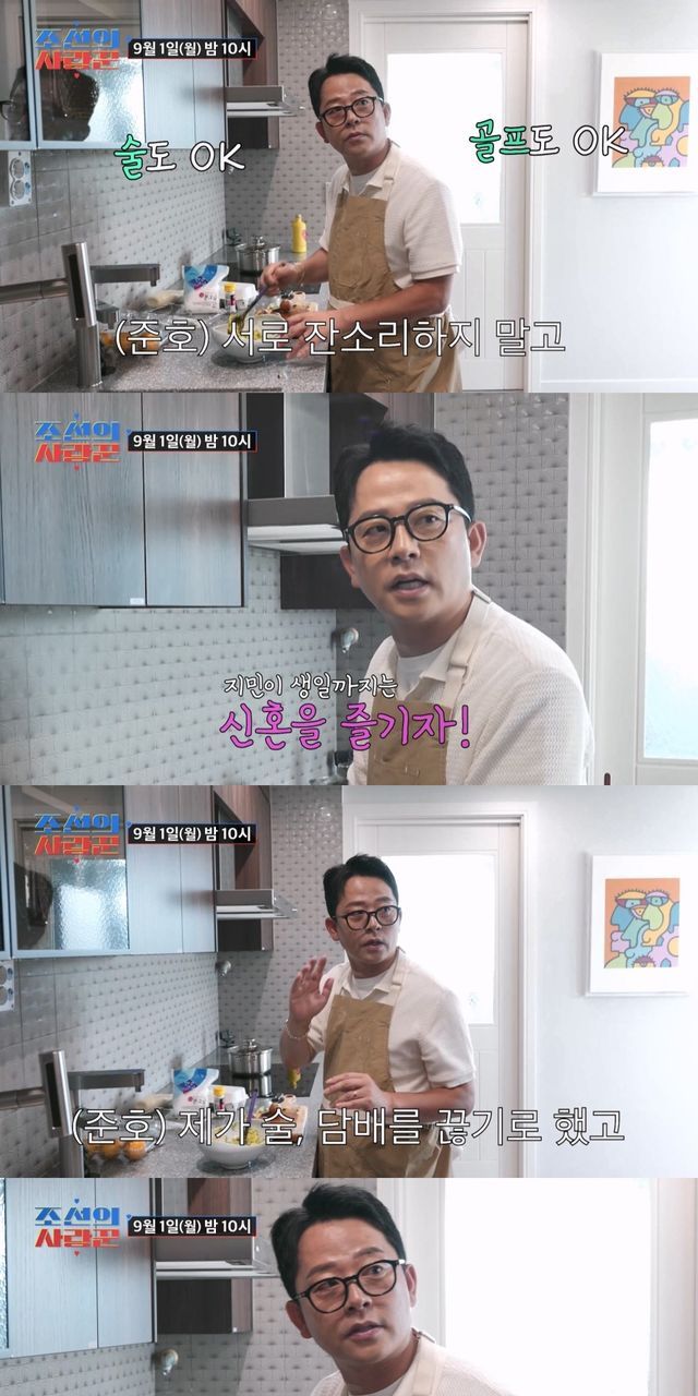 김준호는 "지민이랑 11월 30일까지 파티하기로 했다. 서로 잔소리하지 말고 술이고, 골프고 신혼을 즐기기로 했다"며 남다른 신혼 계획을 밝혀 눈길을 끈다. 두 사람은 김지민의 생일인 11월 30일까지는 신혼을 만끽하기로 서로 합의했다고 전한다.