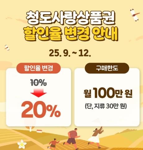 | ▲ 청도군, 청도사랑상품권 9월부터 20% 상향 할인 판매 |