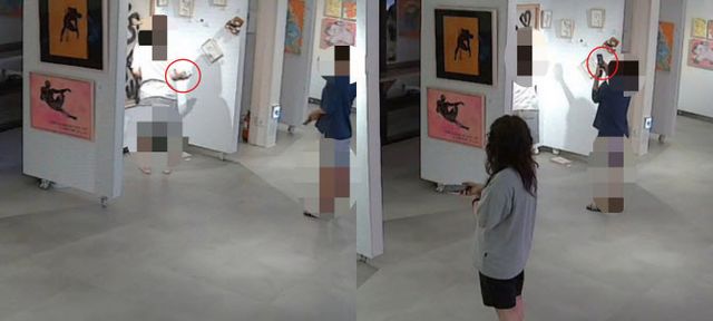 이데일리가 확인한 폐쇄회로(CC)TV 영상에는 여성 A씨가 전시장에 놓인 스프레이를 집어 들어 캔버스 위에 하트 모양을 그리자, 함께 있던 B씨가 이를 촬영하는 장면이 담겼다. 이후 B씨 역시 A씨가 그린 하트 위에 덧칠을 이어갔다.