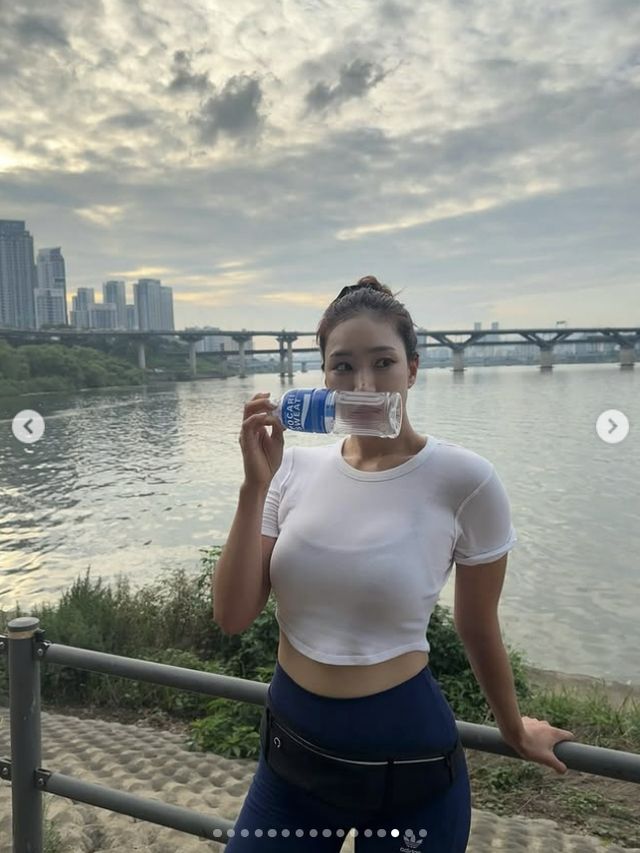 사진 속 유현주는 레깅스와 셔츠로 건강미를 뽐내면서 시원한 한강의 풍경과 한강 분수의 모습도 자랑했다.