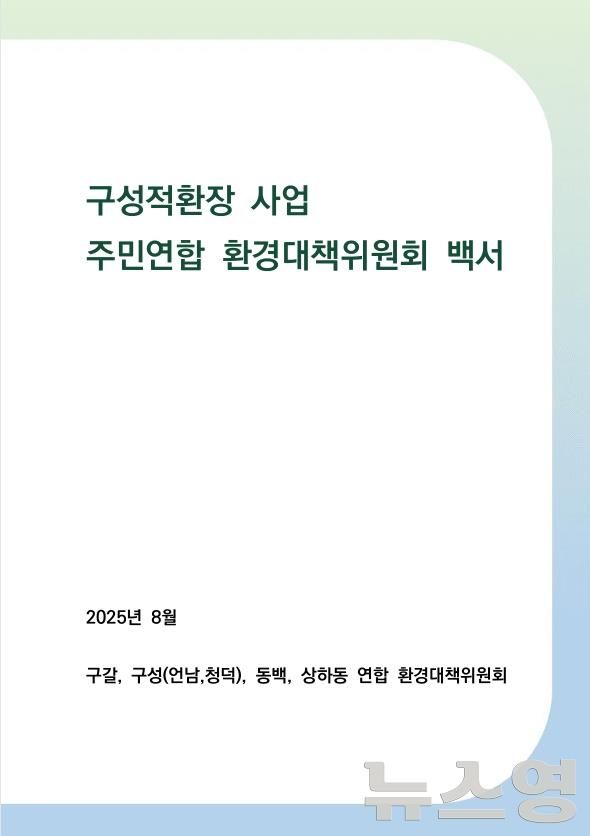 구갈‧구성(언남‧청덕)‧동백‧상하동 연합 환경대책위원회(이하 대책위)는 최근 ‘구성적환장 사업 주민연합 환경대책위원회 백서’를 발간해 이상일 시장의 리더십을 강조했다./사진=용인시
