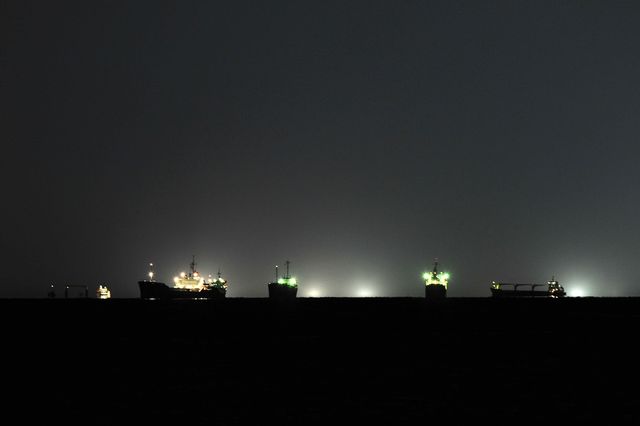 오징어 잡이 선단이 밝힌 집어등 불빛 / 뉴스1
