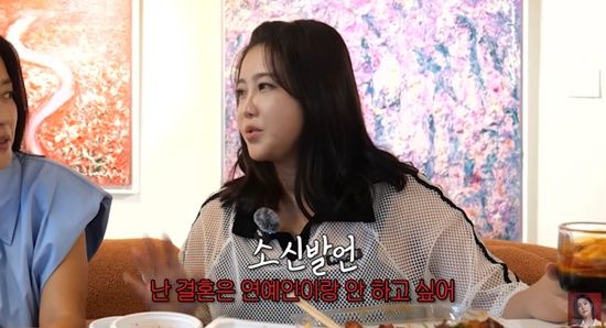 이내 솔비는 "결혼은 연예인이랑 안 하고 싶다"고 발언했다. 특히 그는 최근 연예계 연애 리얼리티 '오래된 만남 추구3'(이하 '오만추3')에서 이규한, 황보와 함께 삼각관계를 이루고 있어 눈길을 끌었다.