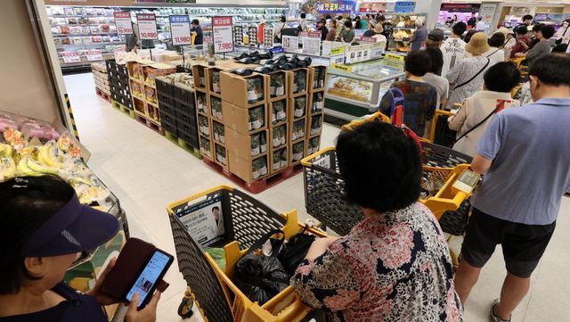 서울 한 대형마트 꽃게 판매대에서 구매를 위해 줄 선 시민들 모습. / 연합뉴스
