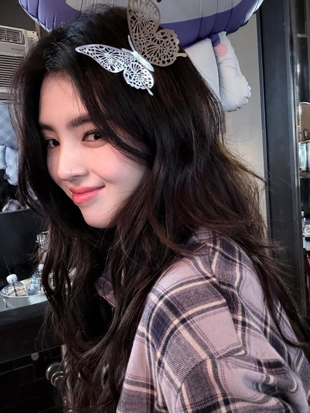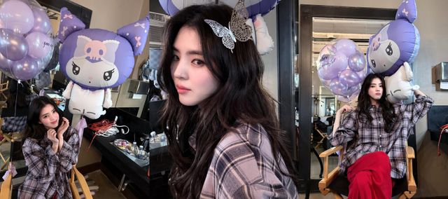 공개된 사진 속 그는 보라색 쿠로미 캐릭터 풍선으로 꾸며진 대기실에서 환한 미소와 다양한 포즈를 취하며 카메라를 응시하고 있다.