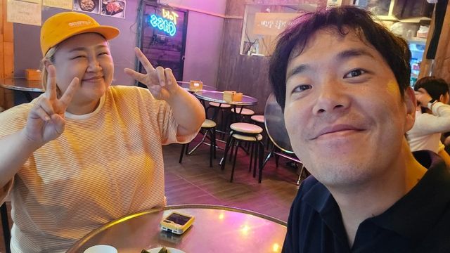 사진 속에는 노란색 티셔츠와 모자로 색을 맞춘 홍윤화가 브이 포즈를 하며 환하게 웃고 있다. 카메라를 든 김민기의 미소에는 흐뭇함이 가득하다. 아름다운 부부의 케미가 훈훈함을 자아낸다.