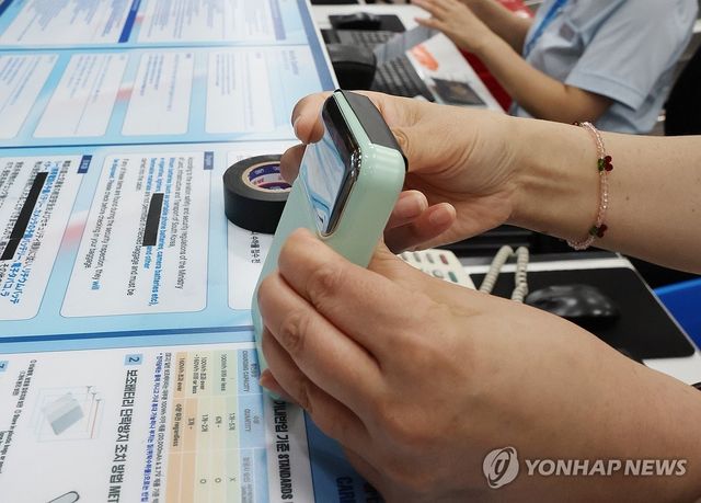 1일 오후 부산 강서구 김해국제공항 대한항공 수속카운터에서 항공사 직원이 승객의 보조배터리 충전 연결부분에 절연 테이프를 부착하고 있다. / 연합뉴스