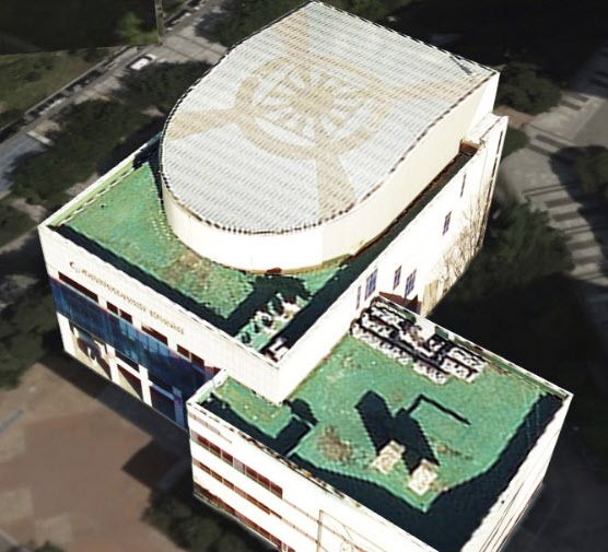 해당 건물 옥상에 그려진 문양은 1950년대부터 1996년까지 통일교가 사용한 문양으로, 붉은색 원을 중심부로 두고 붉은 선 12개가 뻗어 나가는 모양이다.