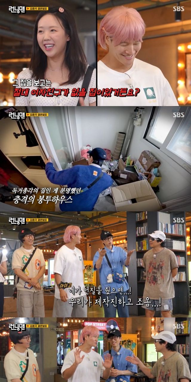 지예은은 "너무 신기하다. 집을 보고는 절대 여자친구가 없을 집이었다"며 시청자들에게 충격을 안긴 김종국의 봉투 하우를 언급했다. 당시 김종국은 쓰레기를 집에 쌓아놔 큰 화제가 됐다.