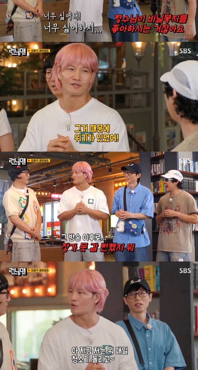 이에 김종국은 "너무 싫어한다. (예비신부가) 집에 오지를 않았다. 그것 때문에 위기가 있었다. 그 방송 이후로 장가 못 갈 뻔 했다"며 뒤늦은 결혼 위기를 고백했다. 이어 "지금 저는 매일 청소기 돌린다"고 덧붙이며 변화했음을 밝혔다.