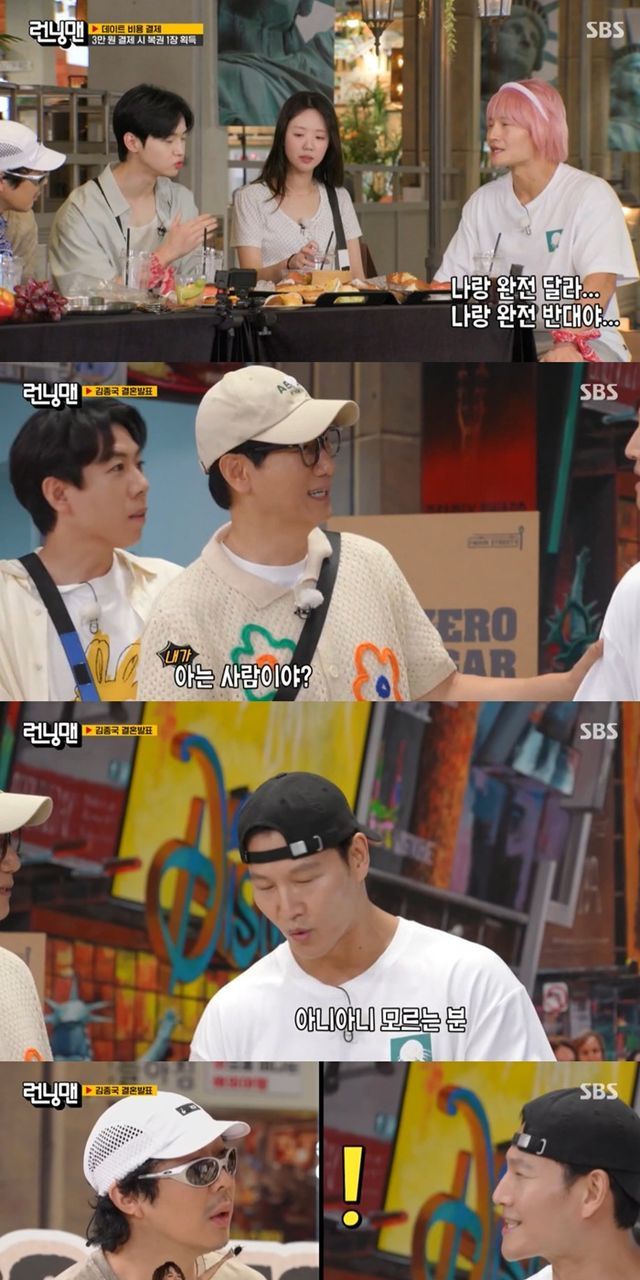 또한 예비 아내가 하하를 제일 싫어한다는 장난을 친 김종국은 "내가 아는 사람이냐"라는 지석진의 질문에 "아니다. 모르는 분이다. 연예계 쪽이 아니다"라며 비연예인임을 밝혔다.