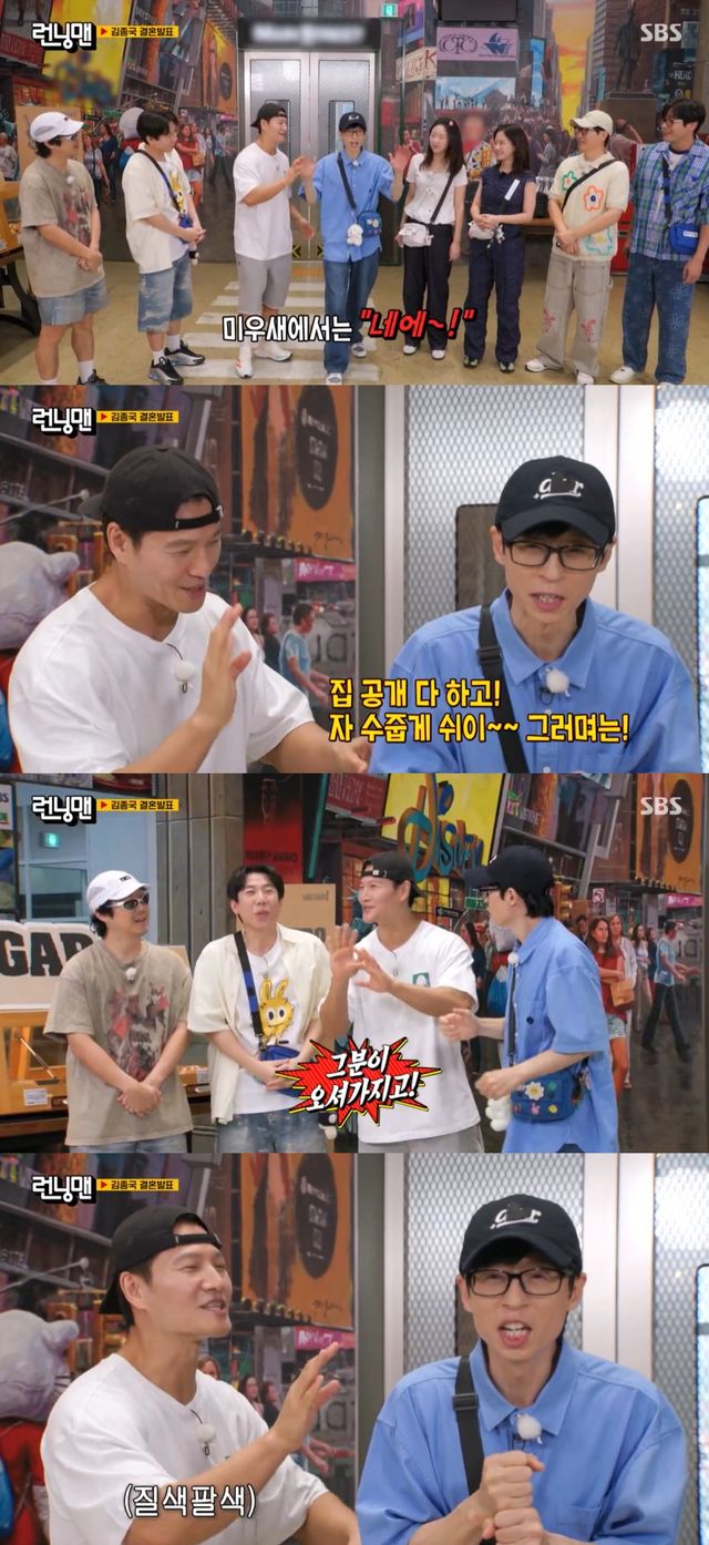 유재석은 "네가 (연애 중이라고) 언질을 줬으면 제작진과 조율했다"며 김종국을 타박했고, 하하는 "형수님이 비닐봉지 좋아하는 거 아니냐"고 짚었다.