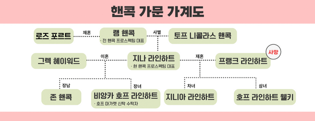 실제로 과거 랭은 핸콕 프로스펙팅 지분 23.4%를 소유한 신탁사를 손자들에게 유산으로 남겼다. 막내 손녀 지니아 라인하트(Ginia Reinhart)가 25살이 되는 2011년 지나의 대리소유 자격이 끝난다고 유언장에 못 박았다. 그러나 지나는 약속된 기간이 지난 후에도 신탁사 운영권을 넘기지 않았고 결국 엄마와 자식들 간에 법정공방이 벌어지게 됐다. 그 과정에서 장남 존은 기존의 라인하르트 성을 버리고 할아버지의 핸콕 성을 그대로 사용하며 가문 재산의 '원래 주인'을 자처했다. 또 차녀 호프는 가족 간 분쟁에 피로감을 느껴 3700만달러(약 511억원)의 합의금을 받고 모든 권리를 포기한 채 가족 곁을 떠났다.