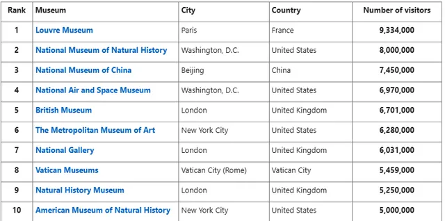 참고로 작년 전세계 박물관 랭킹을 보면