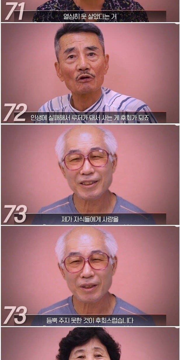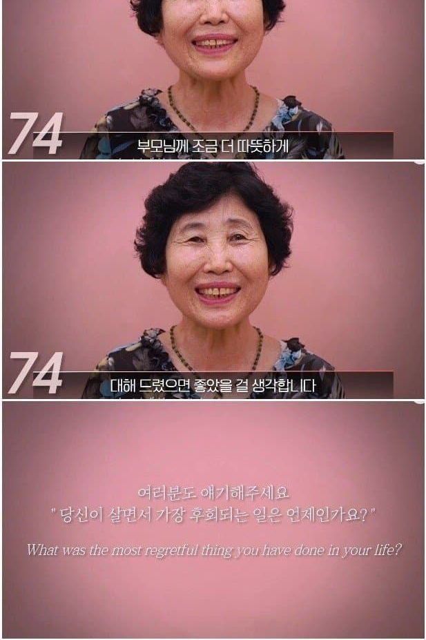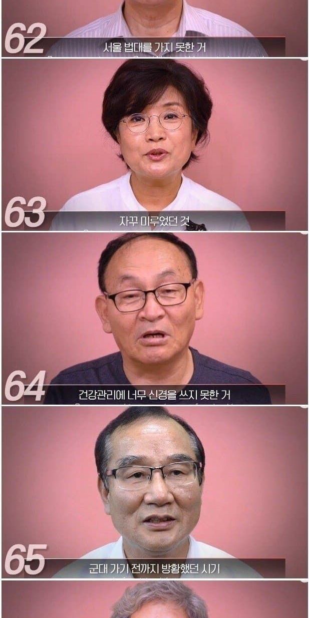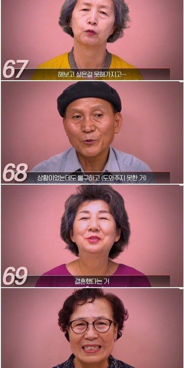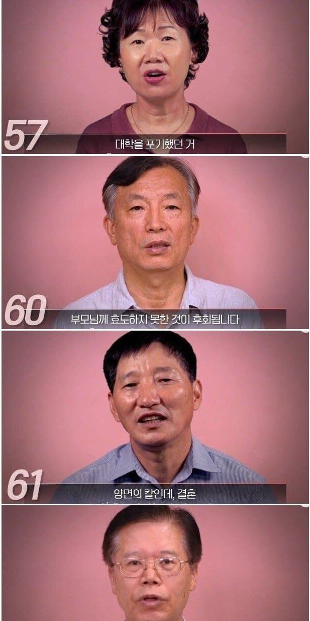 5살부터 74살까지 살면서 가장 후회하는 일을 물어봤다