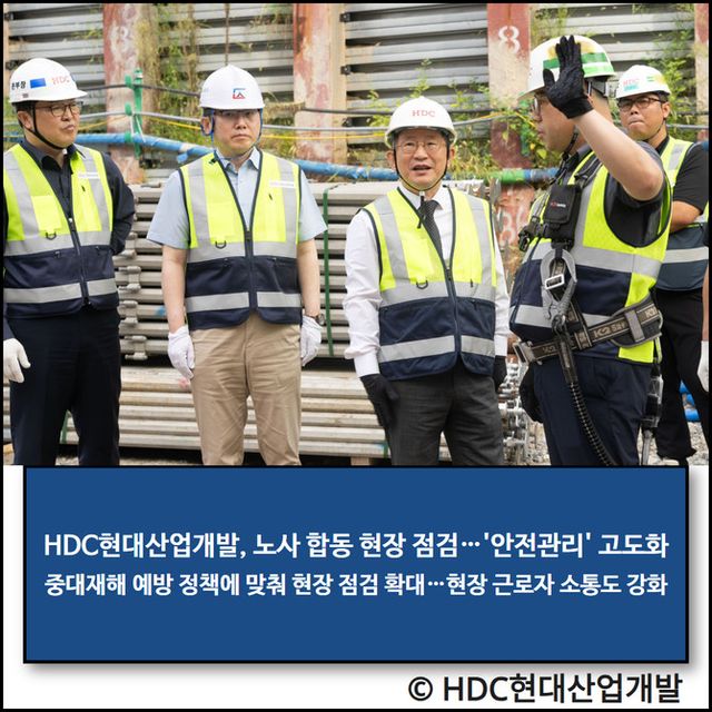 HDC현대산업개발(294870, 이하 HDC현산)은 안전 관리 강화를 위해 노동조합과 함께 현장 합동 안전 점검을 시행했다. 이번 점검은 정부의 산업재해 예방 정책 기조에 맞춰 노사가 함께 중대재해 예방을 위해 단결해 나간다는 의미로 진행됐다.